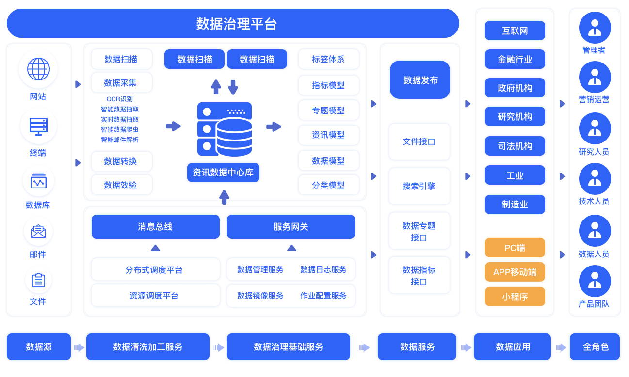 最聞數據治理平臺是完整的數據整合、管理及應用的企業大數據解決方案。我們有豐富的各種數據源清洗轉換的經驗,有完整的金融等數據模型;平臺基于分布式架構體系搭建,擁有強大的數據處理能力;可視化運維管理平臺,可以幫忙企業實現7*24小時穩健的數據服務。